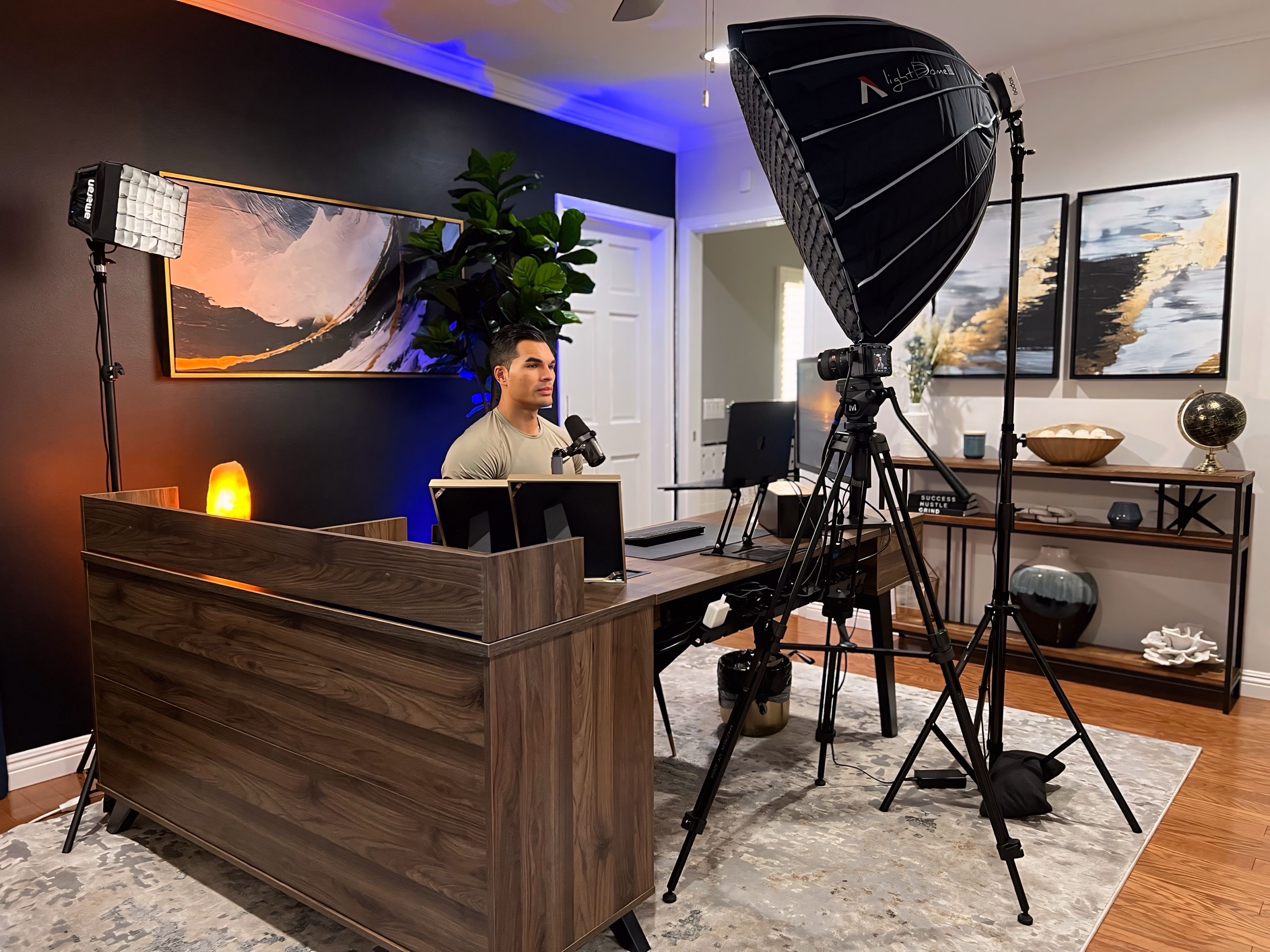 We designed a professional setup for him to use for YouTube, shorts, and virtual meetings.