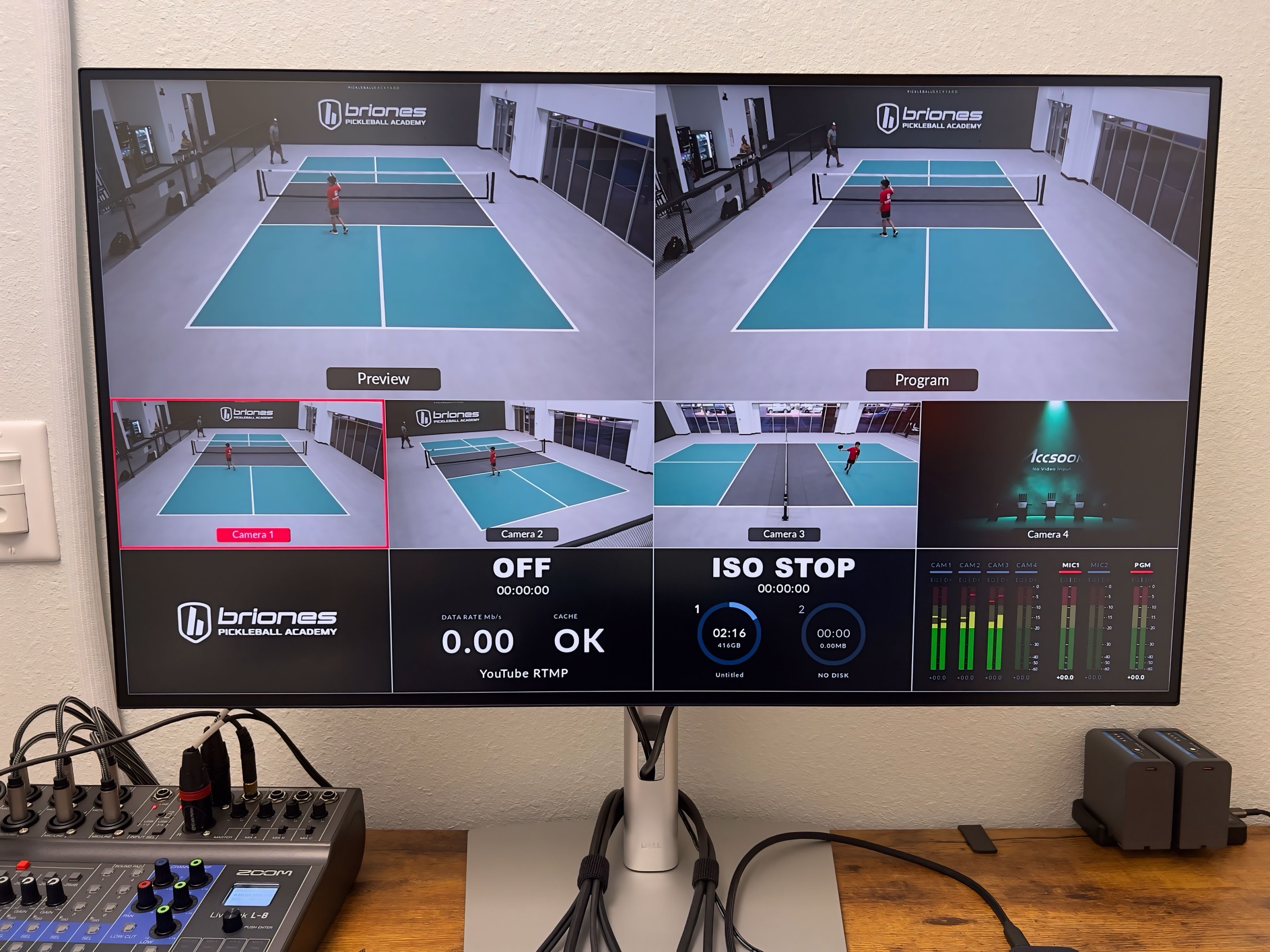 This one was a ton of fun. Briones Pickleball Academy asked us if we can set up a content studio on their main court. We wanted to create a seamless experience for them to hop on the court and easily create content.